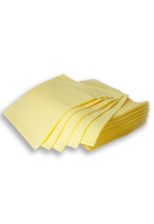 Серветки нагрудні для пацієнта. Стоматологічні нагрудники мають три кулі, дві кулі паперу та одну кулю поліетилену. Максимальний захист досягається завдяки горизонтальним рельєфним смугам та унікальній водовідштовхувальній кромці.